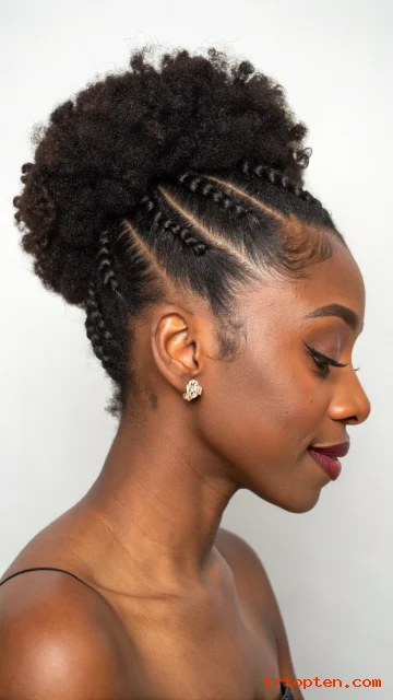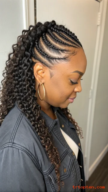 Braid one or two cornrows along the hairline, then style the rest as a wash-and-go. Keep braids moisturized so they stay neat longer.