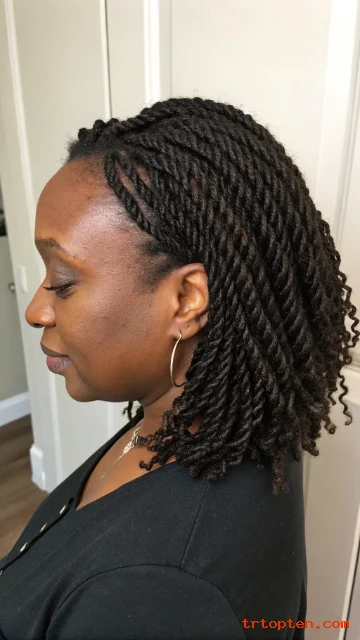Work with damp hair and apply a moisturizing cream, then twist small sections from root to tip. Keep twist size consistent so the final look feels balanced.