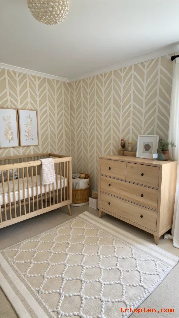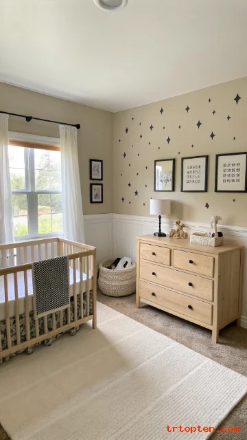 A feature wall adds focus without loud color. Paint one wall in soft beige behind the crib to frame the space.