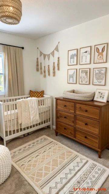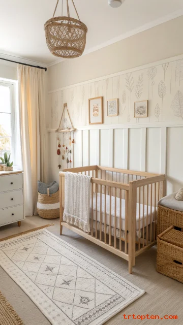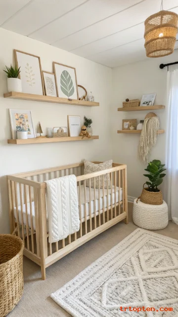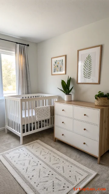 Neutral nursery colors include warm white, cream, beige, taupe, greige, and soft clay. You can also use tiny accents in muted sage or dusty tan without changing the calm look.