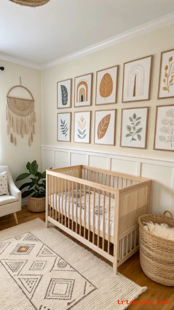 Earth-tone art prints add warmth and personality. Choose simple landscapes, abstract shapes, or gentle botanical sketches.