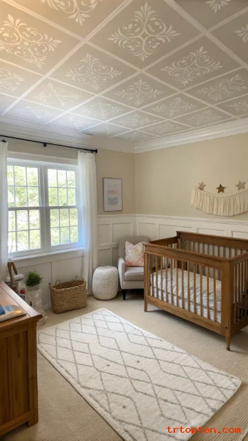 A subtle ceiling detail adds charm when you look up during rocking sessions. Try a soft tint, simple beams, or light wallpaper on the ceiling.