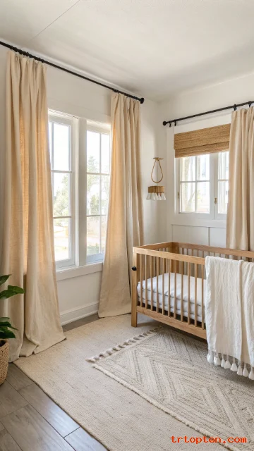 Choose fabric shades in cream for a soft glow. Avoid bright white bulbs so the room stays soothing at night.