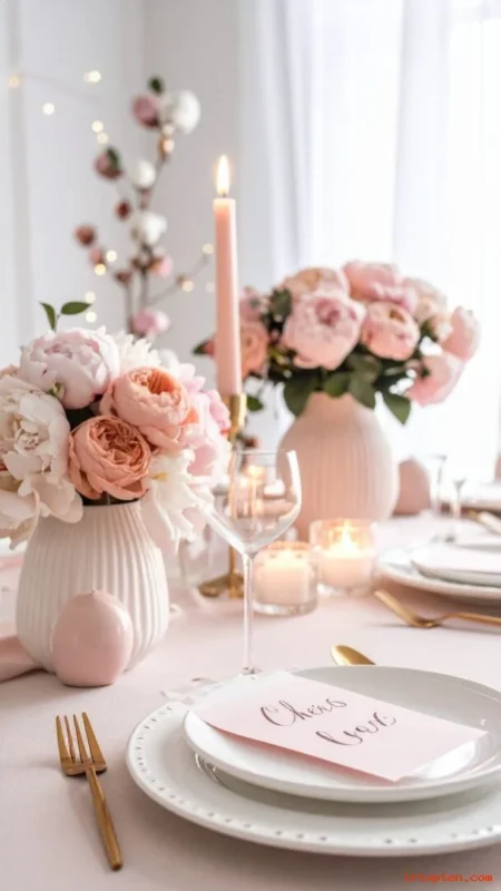 Use blush napkins and champagne-toned plates for a soft glam style. Add rose gold flatware for a warm shine.