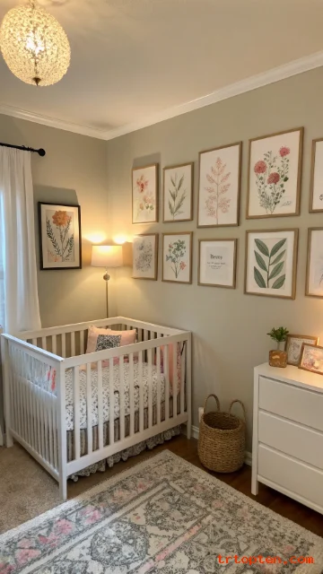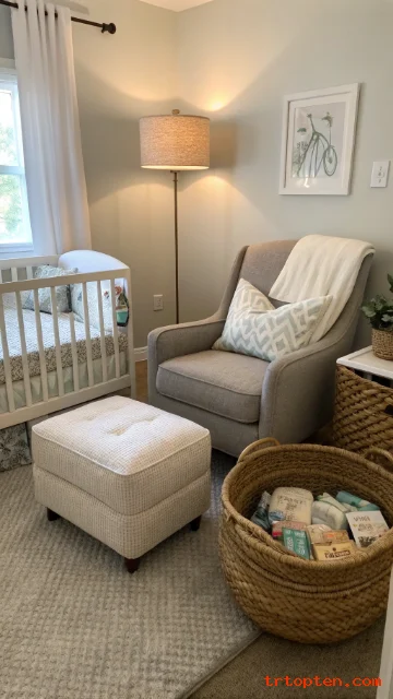 Match colors and materials to your existing furniture. Use similar frames, baskets, and textiles. Keep the nursery items simple and consistent.