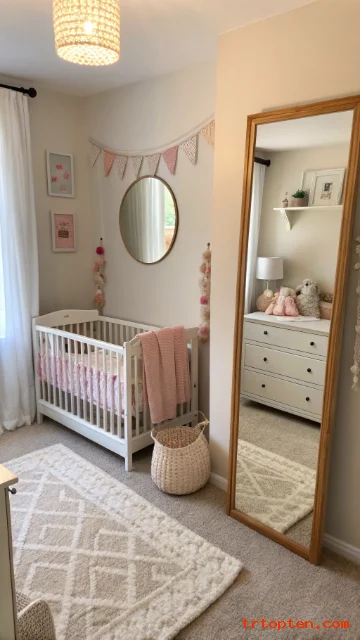 Place the mirror on a wall opposite the window if possible. Avoid placing it where it reflects bright light into baby’s sleep area. Use a secure wall mount for safety.