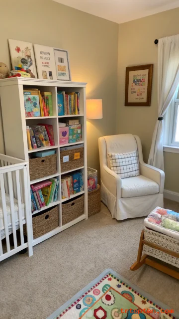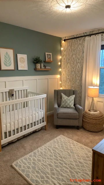 Choose a muted color like sage, dusty blue, or warm beige. Paint only the corner wall behind a shelf or chair, not behind the crib if you prefer a softer look. Keep the rest of the room neutral for balance.