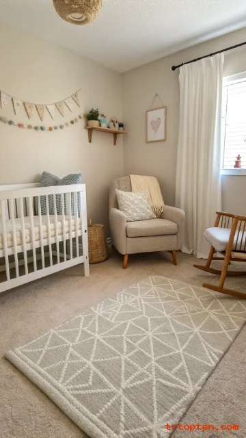 A rug defines the nursery corner visually. It also adds comfort for your feet. It can reduce sound from steps at night.