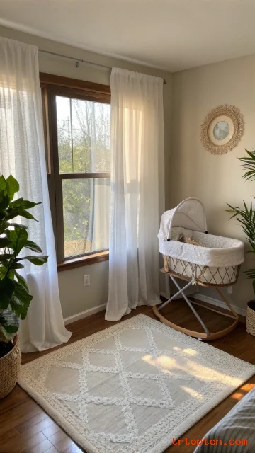 A bassinet fits well in a small nook near a window. Daylight makes the corner feel fresh and open. You can use sheer curtains to keep the light gentle.