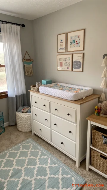 Use your existing dresser as a changing station. You save money and keep the room layout simple. A portable pad lets you remove it when not needed.