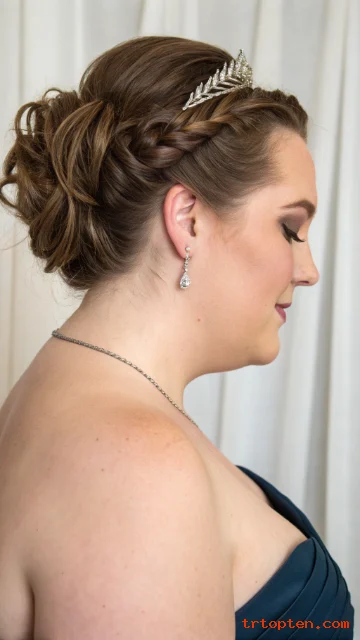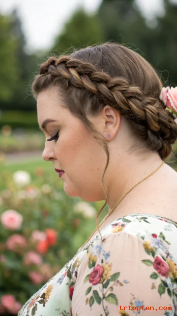 A braided crown looks romantic and keeps hair out of the face. It adds detail without needing heat tools. This style works for weddings, parties, and photos.