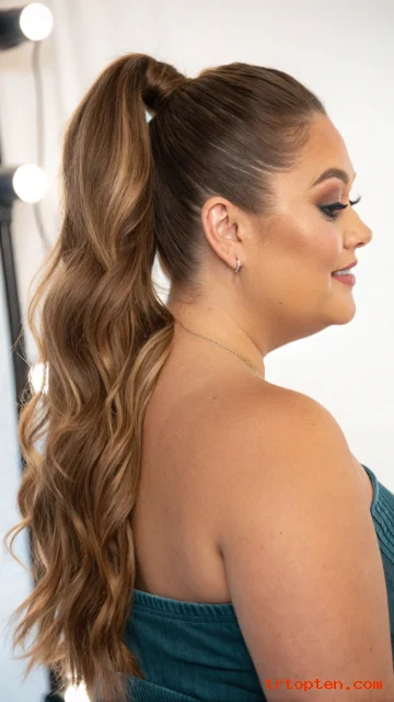 A long ponytail looks sleek but still soft when you add waves. It keeps the neckline open and feels comfortable. It also shows off length in a tidy way.
