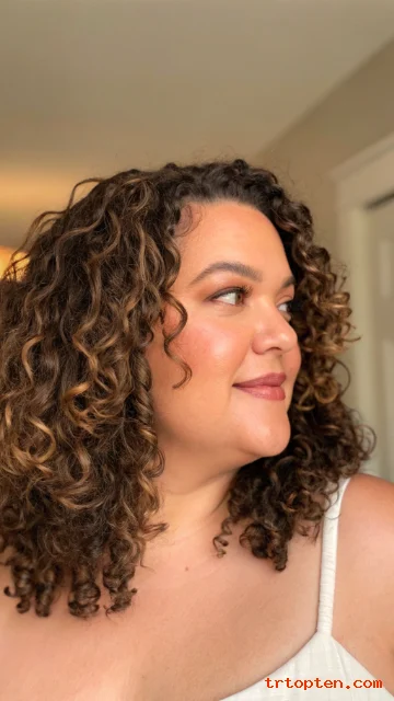 A rounded shoulder-length cut supports curls and keeps the shape balanced. The length helps prevent the sides from puffing out too wide. The result looks polished and bouncy.