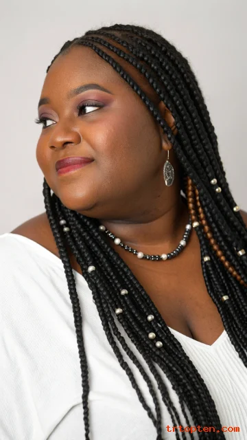 Shoulder-length box braids feel light and easy to manage. This length keeps the look neat and reduces tugging. It also pairs well with accessories.