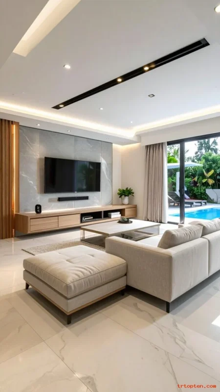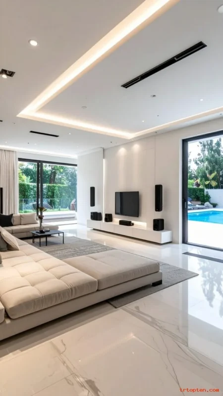 Good sound makes the space feel lively without clutter. Use ceiling speakers or slim wall speakers that blend into the room.Add a simple control panel or a small shelf for a speaker hub.