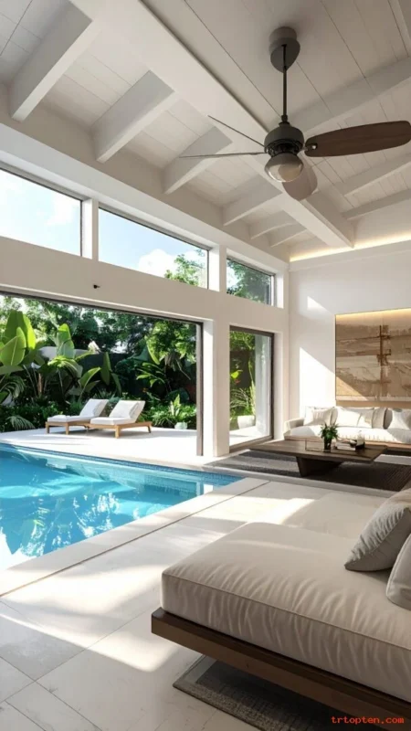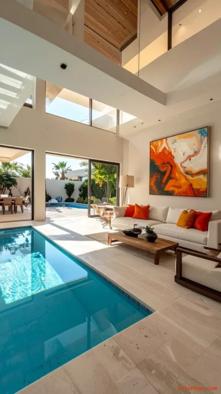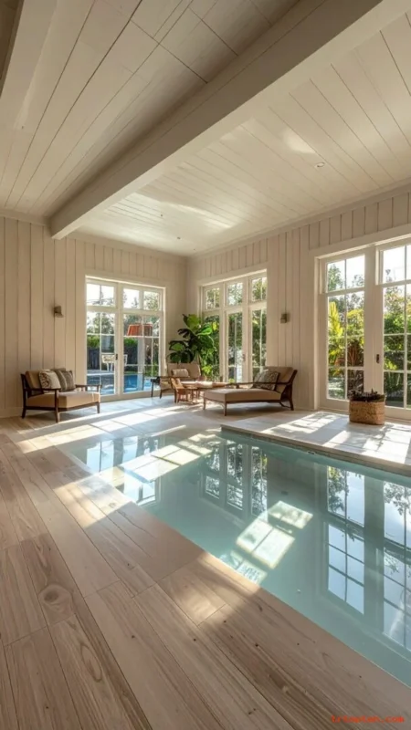 These 26 Pool House Interior Design Ideas help you build a space that feels fun, clean, and easy to use. Focus on durable finishes, smart storage, and comfortable seating so the room works for daily swims and big gatherings.