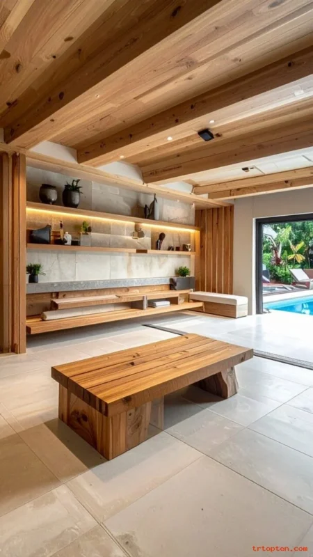 Mix wood with stone or tile for contrast. This blend feels modern and timeless.