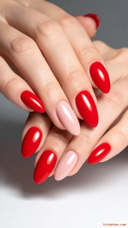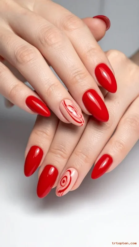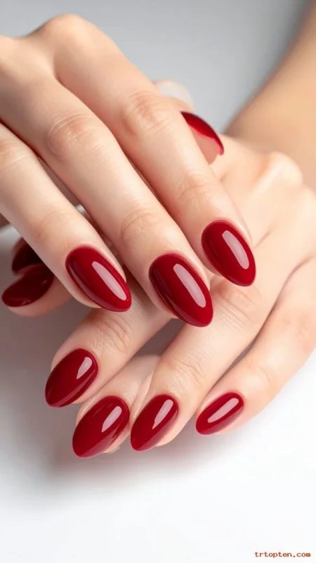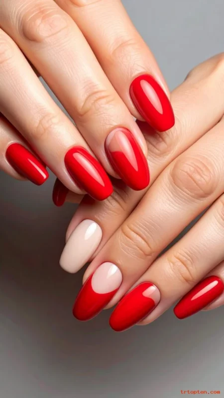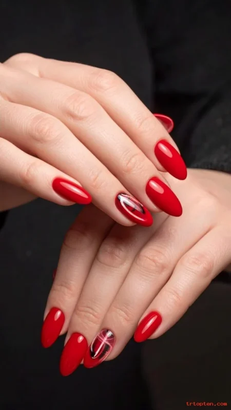 Almond, oval, and soft square all look great with red. Choose the shape that matches your nail length and daily routine.