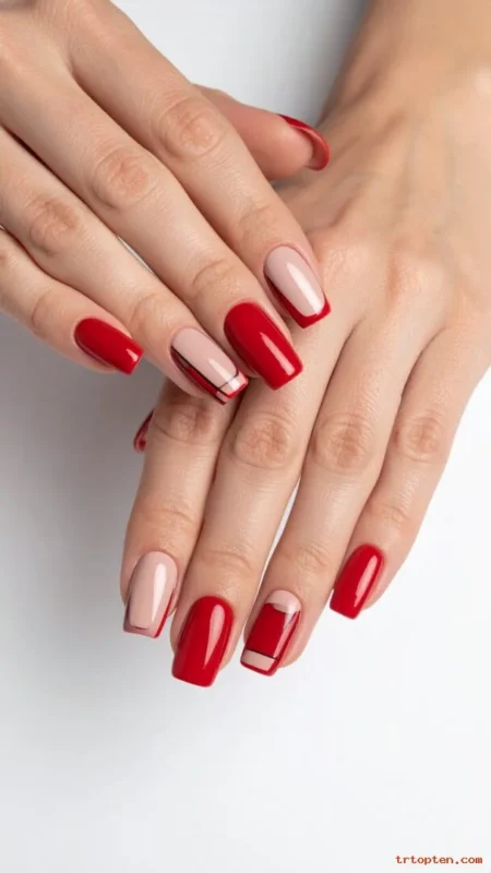 Start with a red shade you love, then add one detail like a French tip, glitter accent, or simple swirl. When you keep lines clean and finish with a strong top coat, red nails look polished for days.