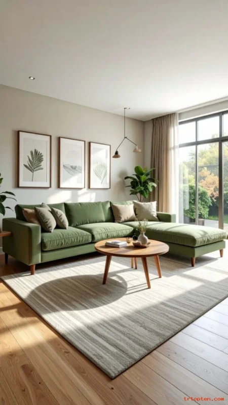 Pick a sage green sectional to combine comfort with color. A large sofa makes the room feel cozy and social.