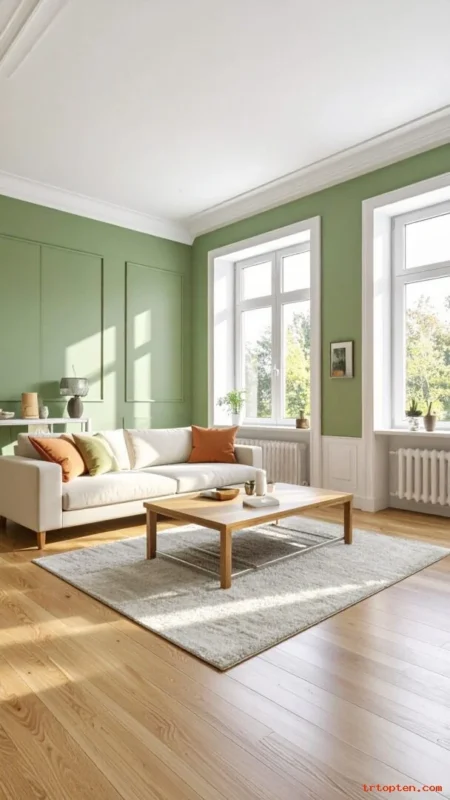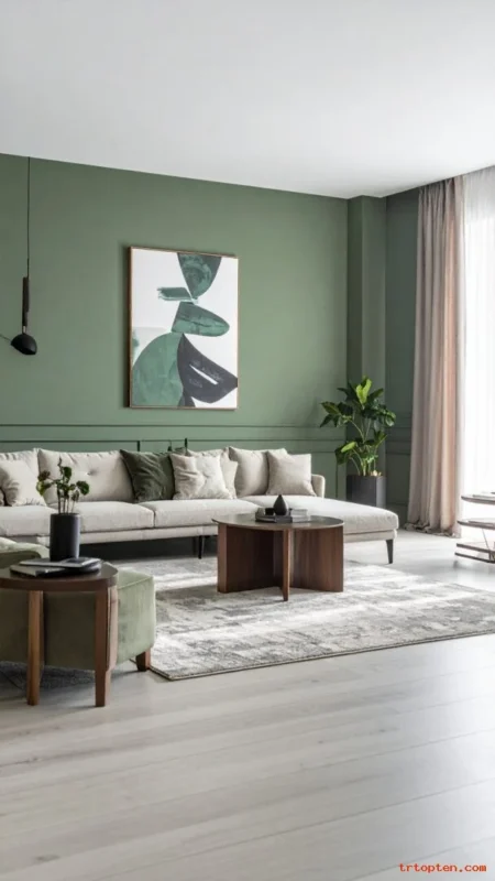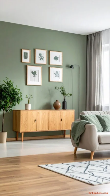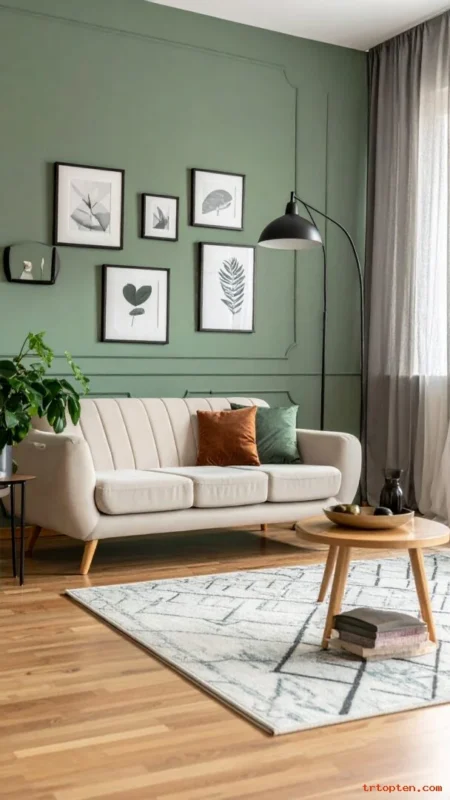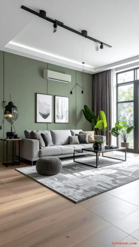 Combine sage green with light gray for a clean, modern feel. This mix looks calm and works well with sleek furniture.