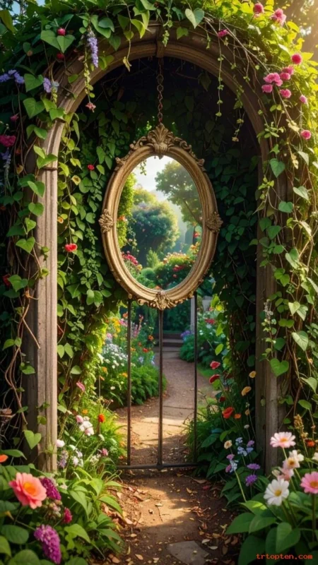 A weatherproof mirror can make a small garden feel bigger. It can also look like a hidden doorway when placed right. This adds surprise without heavy work.