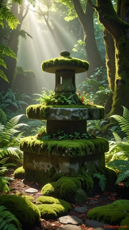 Place stones near shade so moss can thrive. Add ferns and hostas around the base. This creates a cool, hidden woodland look.