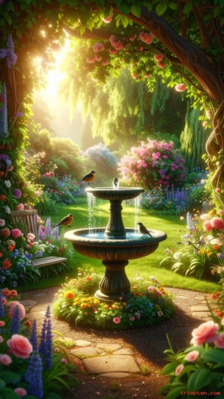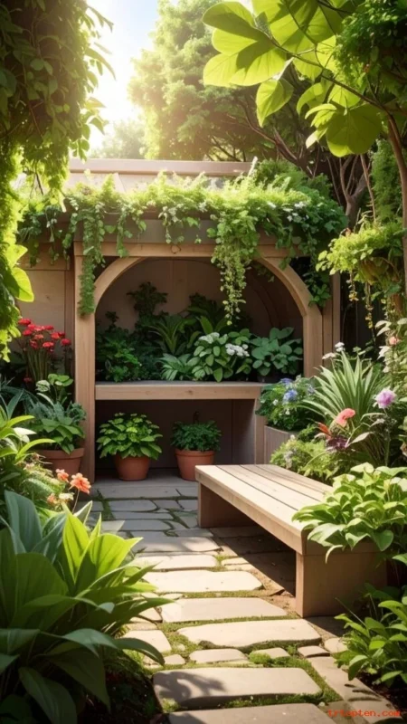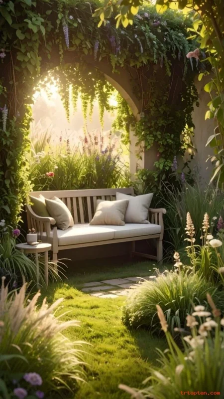 A secret garden feels enclosed, layered, and slightly hidden from direct view. You can create this effect with hedges, tall plants, or screens. Curved paths and hidden seating also add mystery.