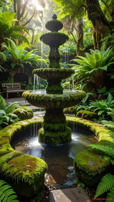 Put the fountain near seating so you hear it clearly. Surround it with ferns, hostas, or mossy stones for a lush look. This creates a shaded, secret feel even in bright yards.