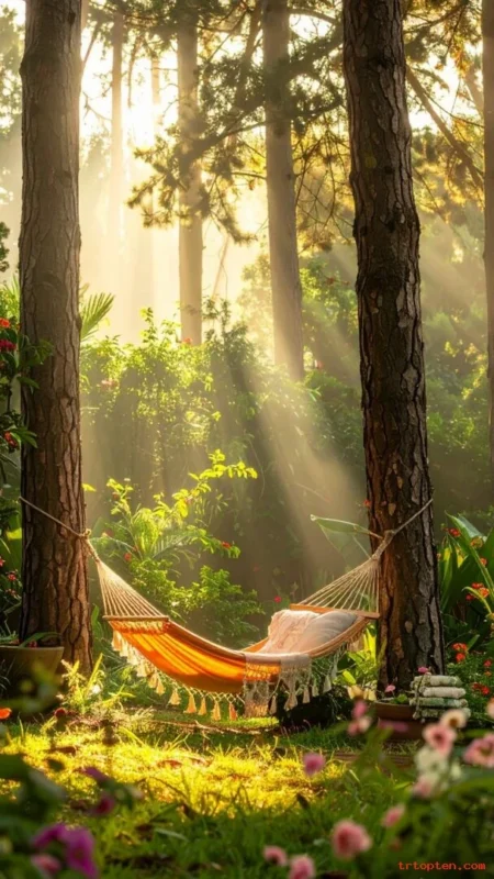 A hammock gives instant relaxation. It also signals that the space is meant for slow time. Even a small hammock area can feel like a secret resort.