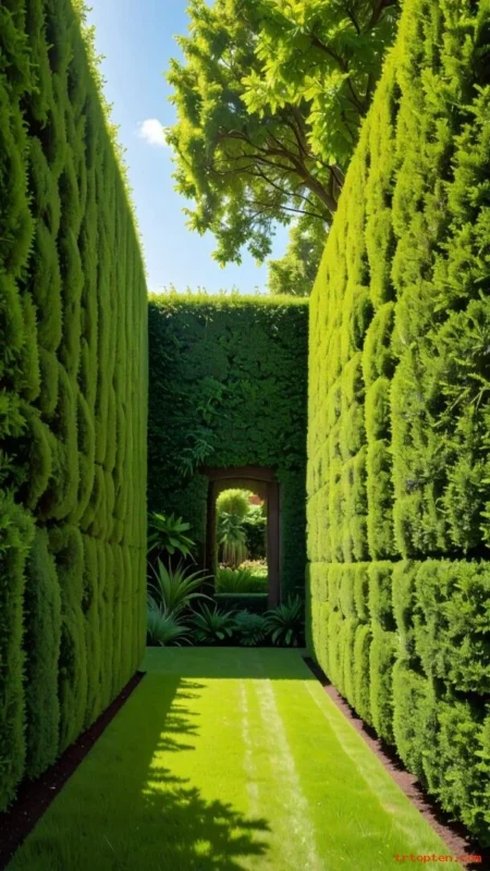 Plant hedges in a line to block views from neighbors. You can leave a small opening as a “secret entrance.” This makes the garden feel intentional and special.