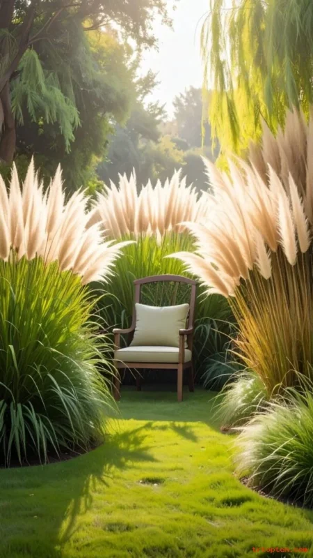 Plant grasses in a curved line to shape a hidden nook. Place a chair or hammock behind them. This gives you privacy while keeping the garden airy.