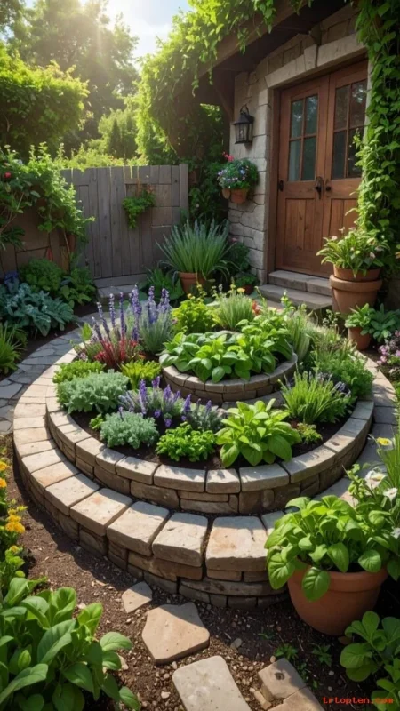 An herb spiral saves space and looks charming. It also gives you fresh herbs close to cooking areas. The spiral shape adds a hidden-garden feel.