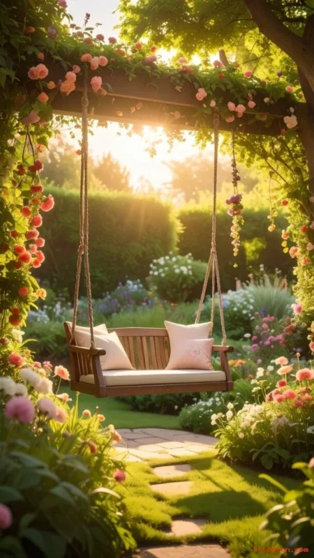 A swing adds romance and movement. It gives you a seat that feels playful and calm. It also looks great in photos.