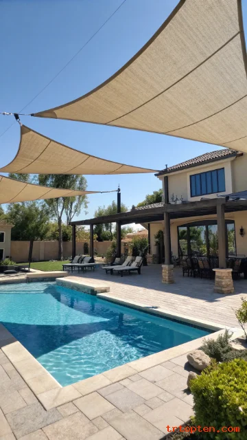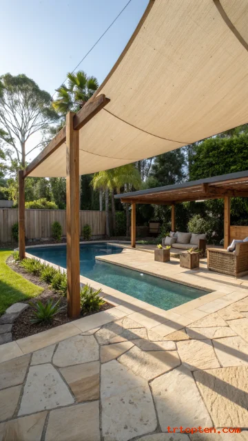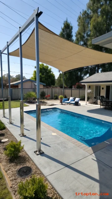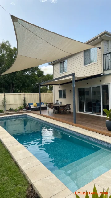 Pick a fabric color that connects with the pool deck and outdoor furniture. The right color helps the sail look like part of the full backyard design.