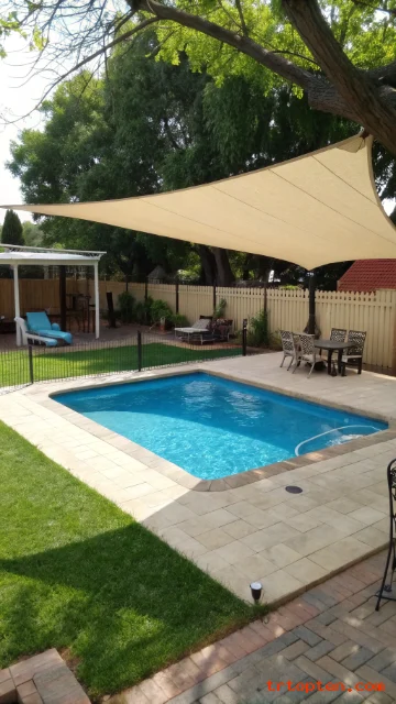 Triangle Shade Sail Over a Small Pool