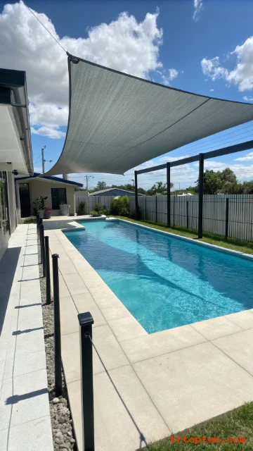 A rectangle shade sail gives the most coverage for long pools. A triangle shade sail gives a lighter, more decorative look.