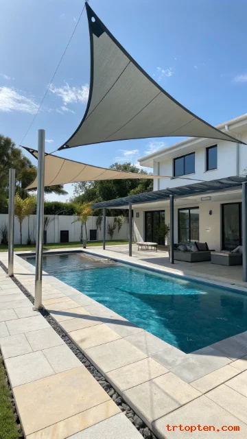 A good shade sail design can also improve privacy and reduce heat around the water. You can choose bold colors, soft neutrals, layered sails, or modern geometric layouts.