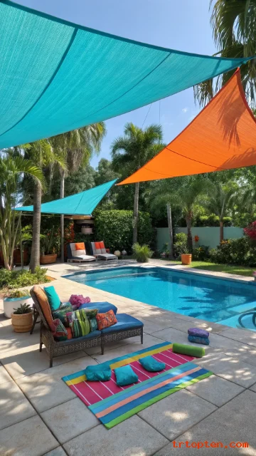 Colorful Shade Sail for a Fun Pool Area