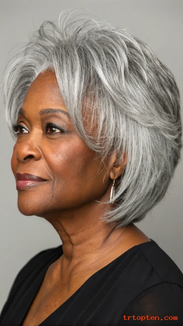 Ask for soft silver-toned highlights that blend into natural hair. Use texture spray to emphasize layer separation.