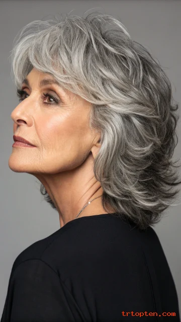 Yes, shag layers show dimension and shine in gray hair. The movement helps gray hair look lively and full.