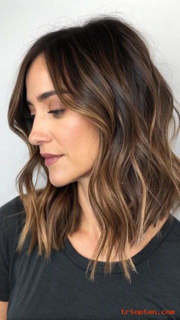 Ask for soft balayage or fine highlights focused around the face and through the ends. Style with loose waves to display the color shifts.