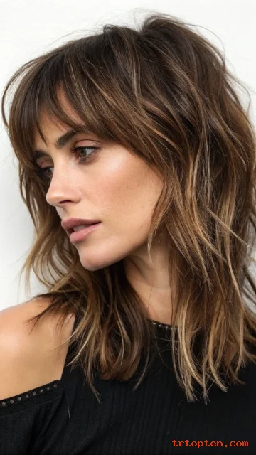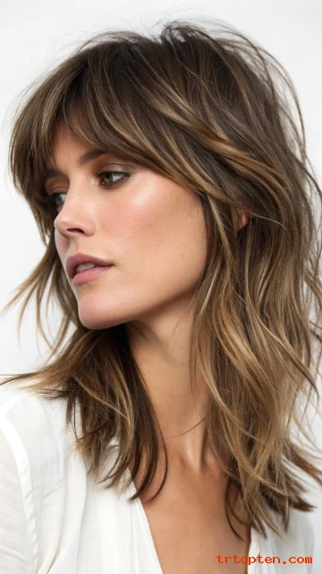 This shag suits straight, wavy, and lightly curly hair. Trim every 6 to 8 weeks to keep the shape crisp.