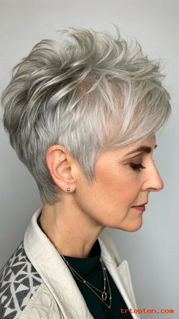 Use a purple shampoo sometimes and a lightweight styling cream.This style looks confident and modern at any age. Keep hair hydrated for extra shine.