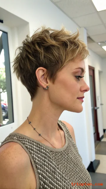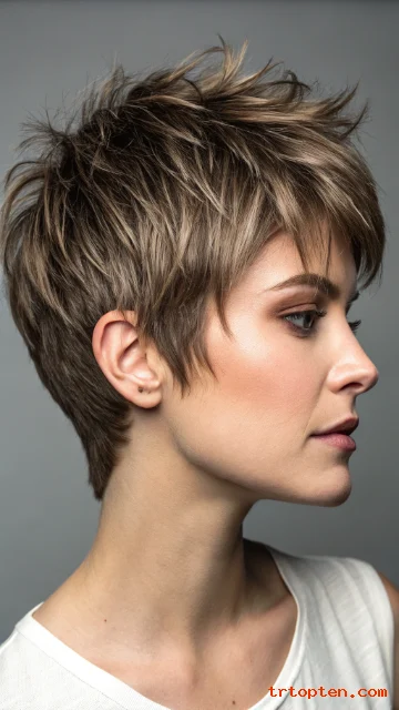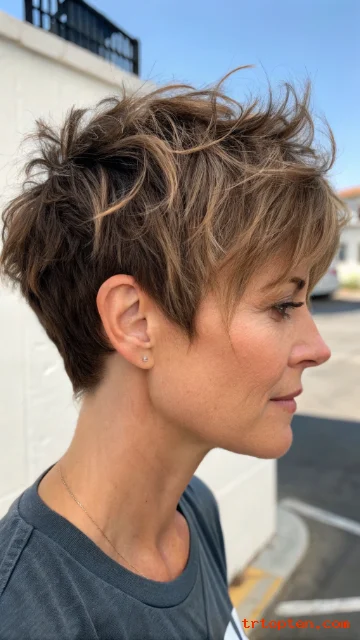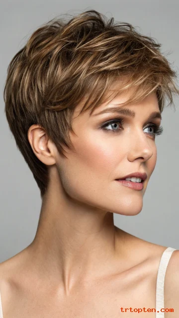 Bring your favorite photo to the salon and ask for choppy layers, soft blending, and piecey ends, then enjoy a short cut that feels fresh every day.