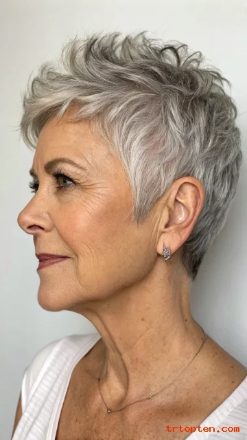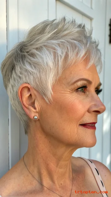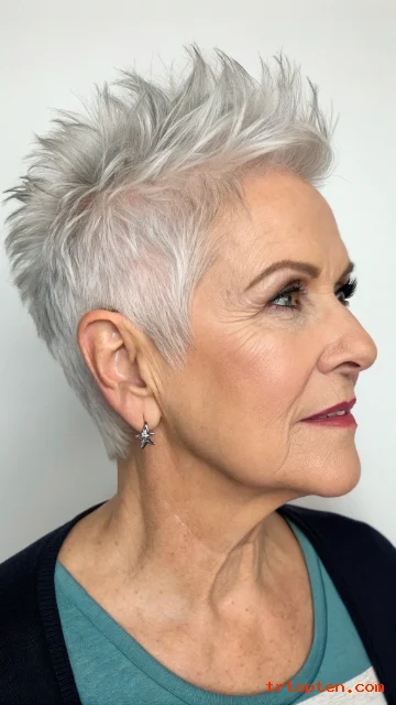 A short spiky pixie adds fun texture and lift. The spiky finish can make hair look thicker. It also gives a bold, energetic vibe.