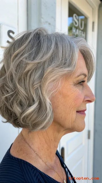 A short wavy bob looks relaxed and modern. Soft waves add volume and hide flat areas. This style can look great with natural texture.