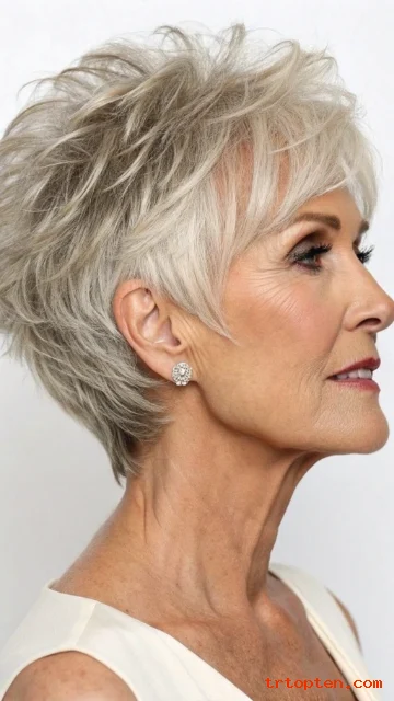 A short spiky pixie adds playful texture on top. It looks modern and can make hair appear thicker.