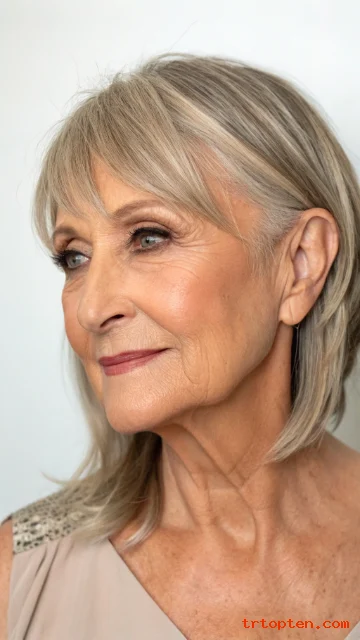 This look suits straight or wavy hair and feels current. Blow-dry the bangs away from the face for a smooth curve.