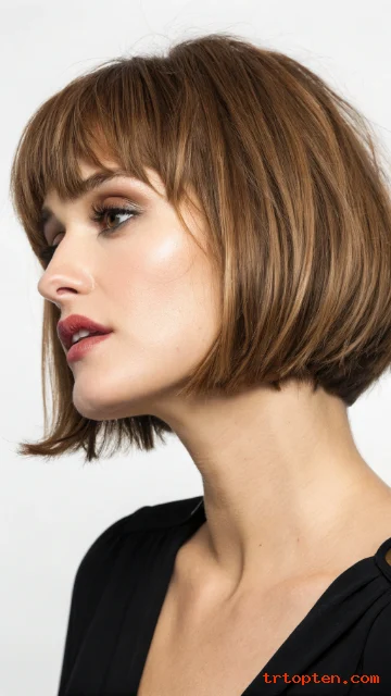 This style suits straight hair and can flatter long faces. It also looks modern with bold lipstick or simple makeup.